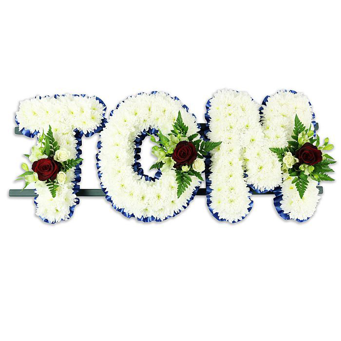 Pay your respects with our Classic Letter Tribute Bouquet. This elegant arrangement features a delicate mix of white chrysanthemums, red roses, and white freesias, thoughtfully designed to honor a beloved memory.