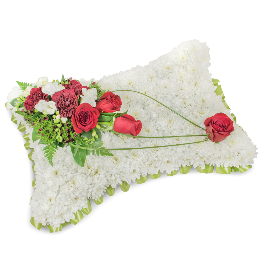 Offer your deepest sympathies with our luxurious sympathy bouquet, thoughtfully arranged to provide comfort and elegance. This exclusive bouquet includes a beautiful mix of white chrysanthemums, stunning red roses, aromatic white freesias, rich dark red carnations, graceful dianthus, and soft bear grass.